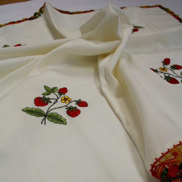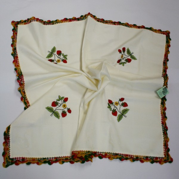 Toalha de algodão quadrada com aplicações em crochet (com motivos variados)